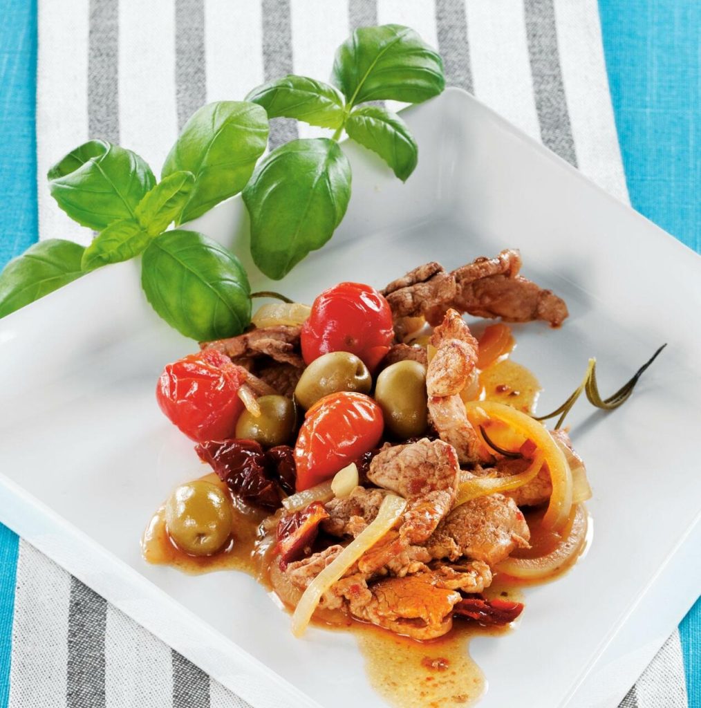 Medelhavsragu på strimlat fläskkött