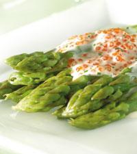Grön sparris med varm forellromsås