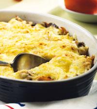 Gratinerad kyckling med selleri och champinjoner