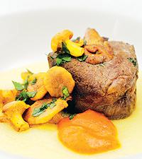Vildsvinskotletter på rotsaks-, svamp- och lökbädd
