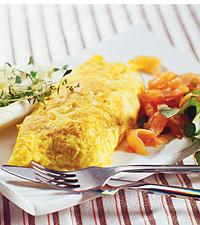 Omelett med lökröra och lax och endiv