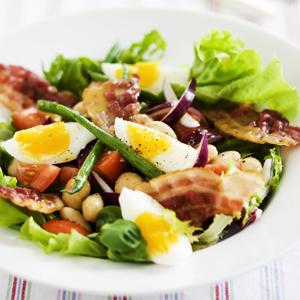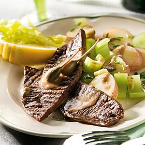 Trädgårdssallad med kalvstek och kaprismajonnäs