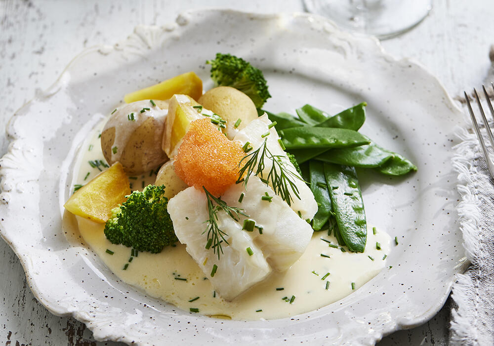 Ugnsbakad torsk med sandefjordsås