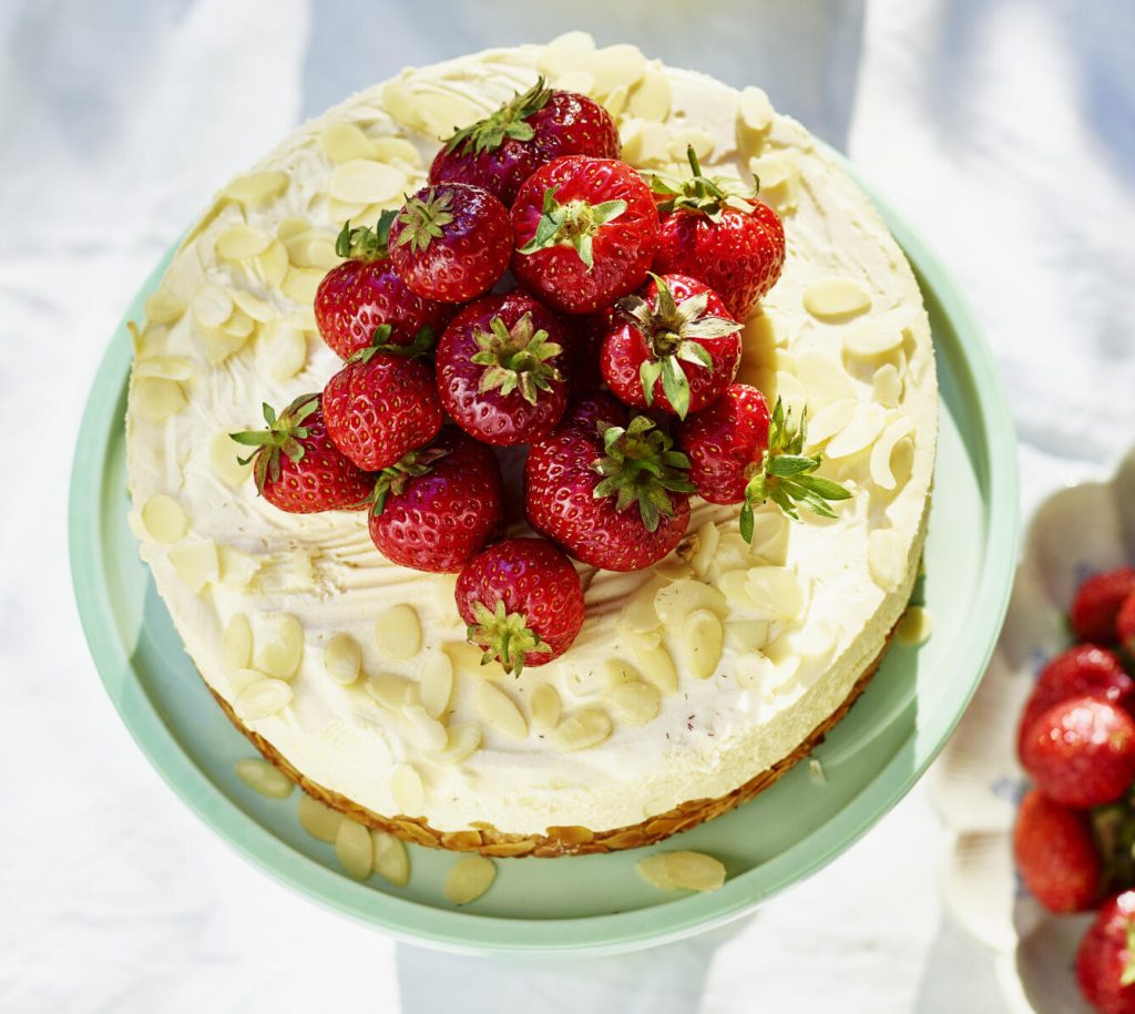 Mandeltårta med jordgubbar