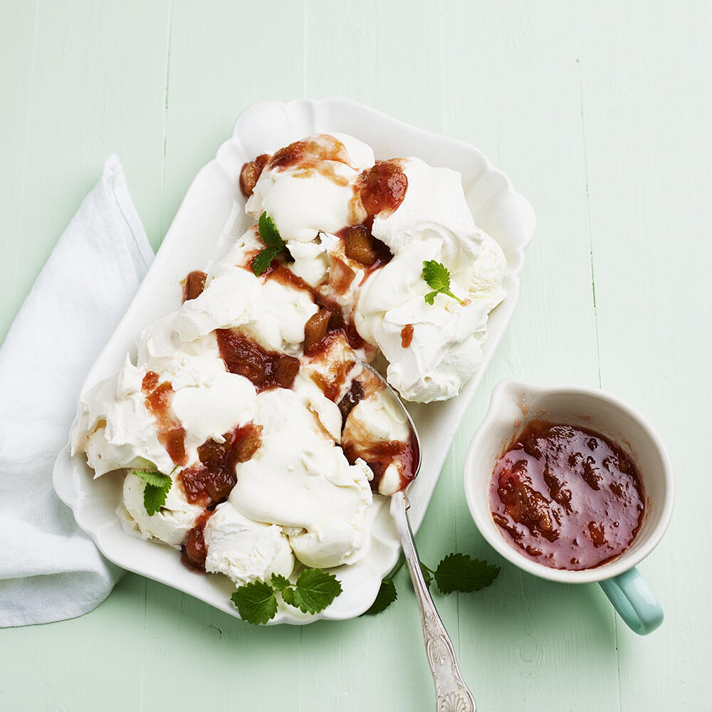 Marängsviss med rabarberkolasås