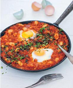 Ägg i skärselden med vita bönor