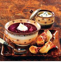 Rödbetssoppa med ricotta och baconsnurrbröd