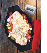 Kasslergratäng med tomat, squash och purjo