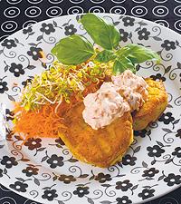Matiga kikärtsbiffar och yoghurtsås med soltorkade tomater