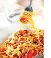 Fullkornsspagetti med skaldjurssås