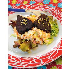 Linssallad med äppelbitar till korianderstekt blodpudding