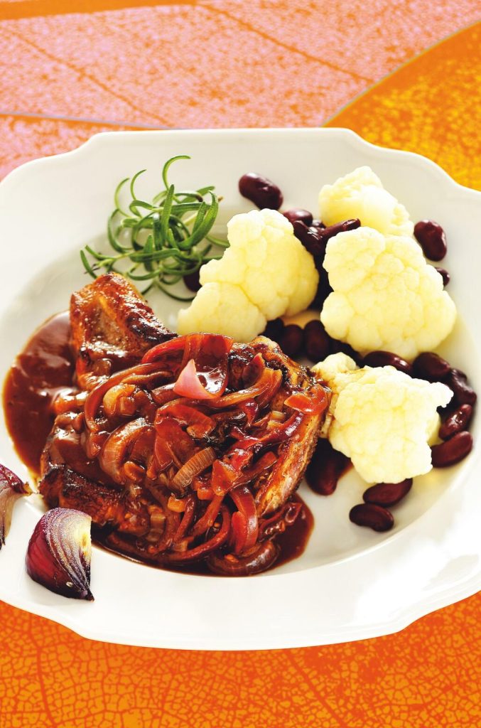 Lökbräserad kotlett med blomkålssallad