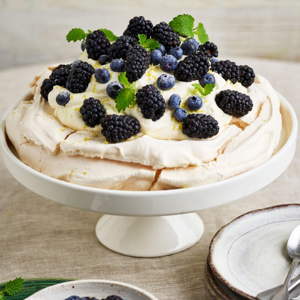 Marängtårta med citronkräm och bär