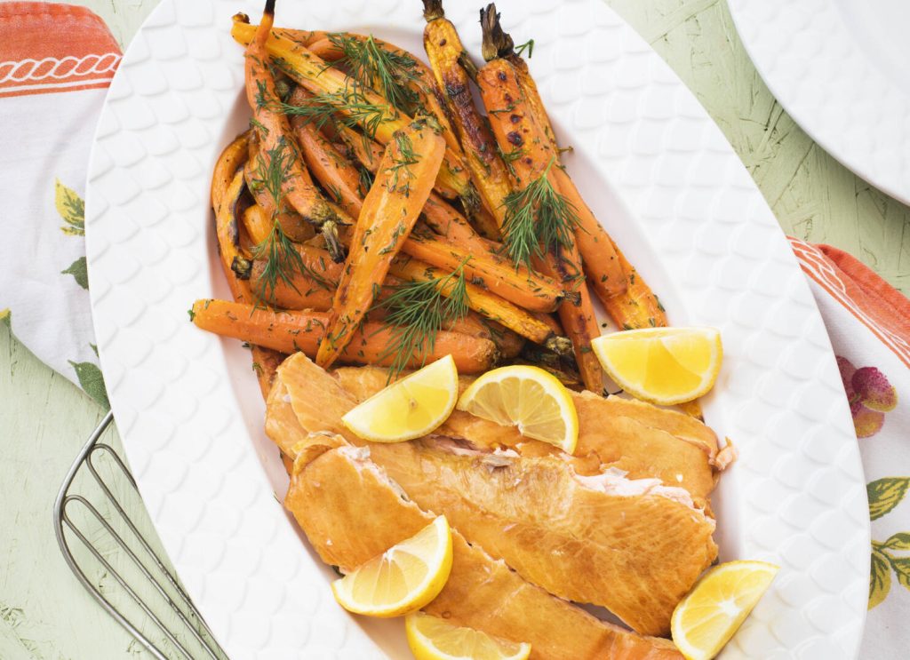 Ugnsmorötter med varmrökt lax