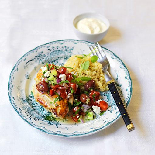 Ugnsbakad spätta med räkfyllning och vitvinssås