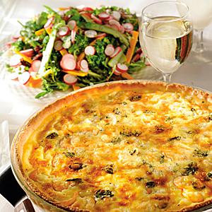Räk- och ostpaj med blandad sallad