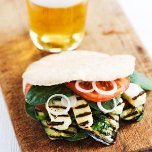 Grillad aubergine och halloumi i pitabröd
