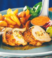 Örtfylld kycklingfilé med fetaost och ajvarsås
