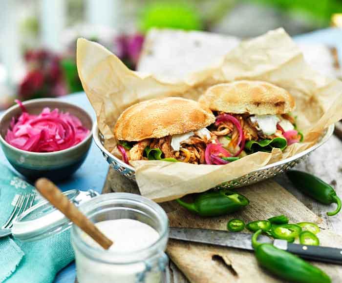 Pulled chicken burgers