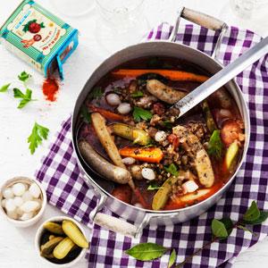 Mustig korvgryta med puylinser
