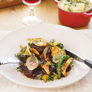 Högrevsgryta med kantarell och lök