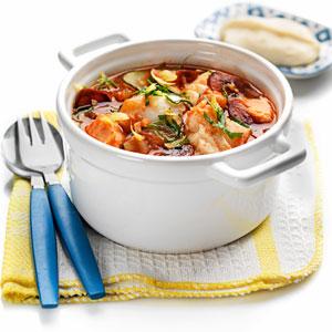Kryddig fiskgryta med korv