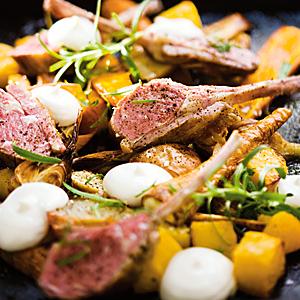 Lammracks med rostade rotfrukter och kall getostcreme