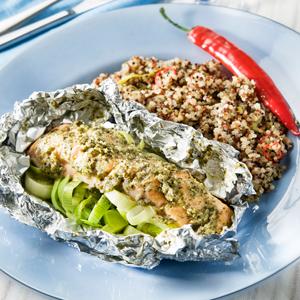 Chiliquinoa med lax i folie