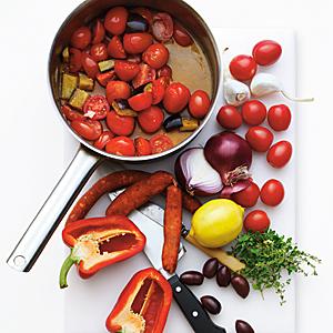Ratatouille med chevre och chorizo