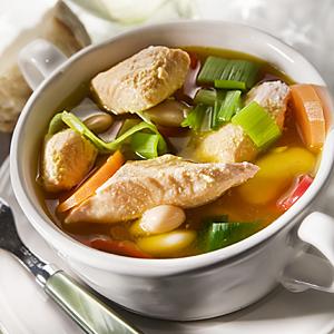 Saffransbuljong med lax och bönor