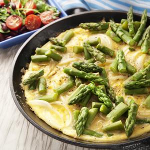 Sparrisomelett med bönsallad