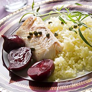 Örtsmörstorsk med rödbetor