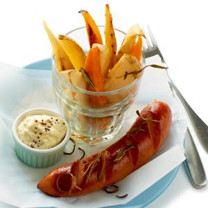 Middagskorv med rostade rotfrukter