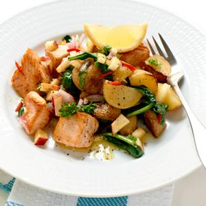 Lättlagad laxpytt med äppelsalsa