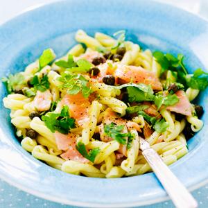 Pasta med rökt lax och kapris