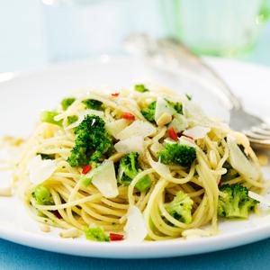 Broccolipasta med pinjenötter