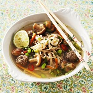 Kalvfrikadeller i asiatisk buljong