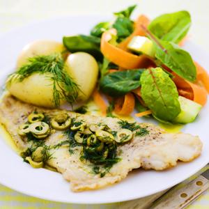 Stekt torsk med oliv- och dillsmör