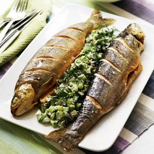 Helstekt röding med gurksalsa