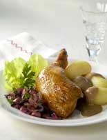 Stekt kycklingklubba med rödkålssallad