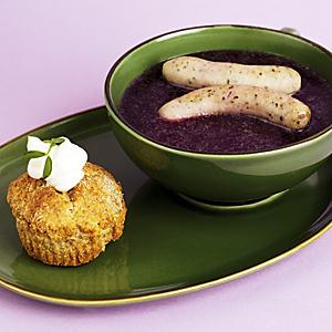 Rödkålssoppa med korv och scones