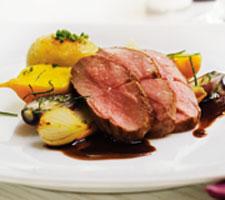 Lammstek från Välnäsgårdmed med kroppkakor, primörer och timjansky