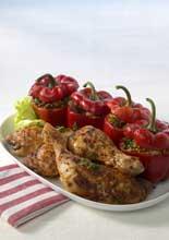 Grillade kycklingklubbor med fyllda paprikor
