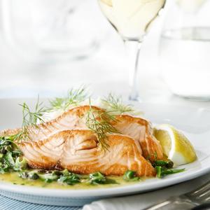 Halstrad lax med vitlökssky