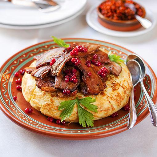 Äggakaka med fläsk och lingon