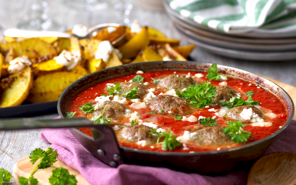 Läckra köttbullar på lammfärs med ugnsrostad potatis