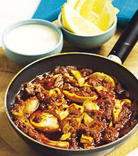 Indisk lammcurry med kryddig yoghurt och bönor eller ris