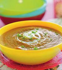 Tomat- och kokossoppa med chili och linser