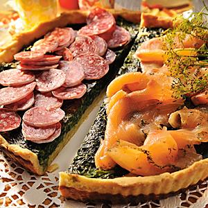Spenatpaj med gravlaxtopp eller korvtopp