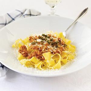 Stora fusilli med köttfärssås Fusilli giganti al ragú di carne